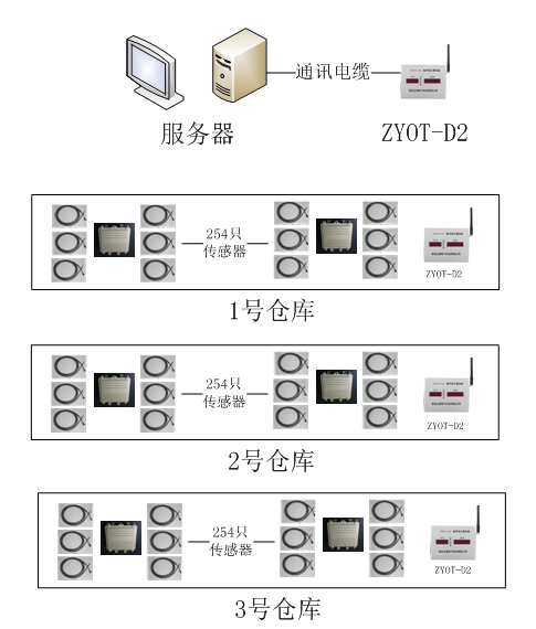 l 服務器可管理多達254個倉庫,每個倉庫可管理254個無線測溫傳感器