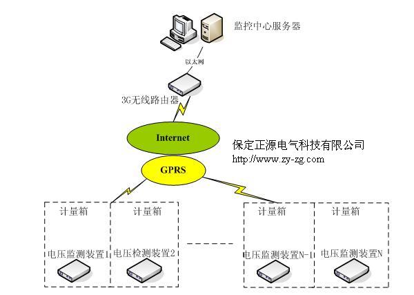 系統由電壓監測裝置、監控終端服務器兩部分組成。