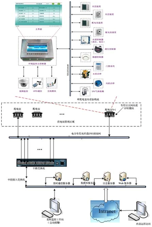 ZYPD-2020配電室環境監控系統主控制器通過采樣接口采集各種傳感器的數據信息,狀態信息,經過計算處理通過液晶顯示屏實時顯示配電室環境的情況,并通過網絡或短信方式告知值班人員,避免發生不必要的損失。該系統是集控制為一體的綜合平臺,現場所發生的如水位過高或溫度過高等情況時可以通過系統自動啟動現場應急設備來處理緊急情況。因此,加強對配電室環境實時監測,保障供電安全,具有非常重要的實際意義。